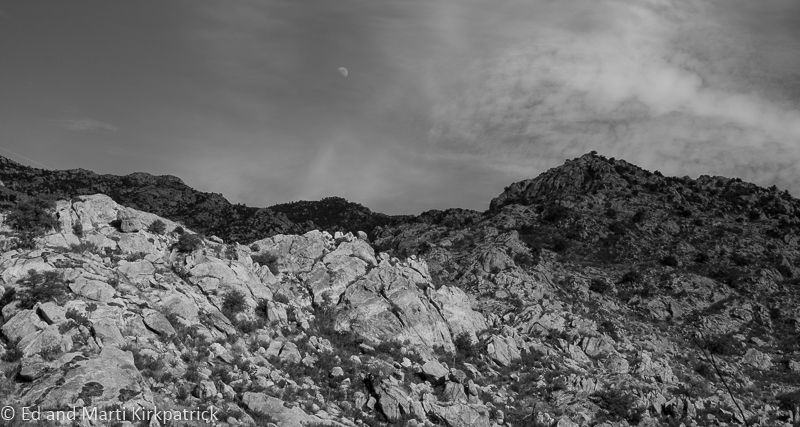 Other than hiking, our favorite thing to do at Catalina is to watch the stars come out and if we are there at the right time of the month, the moonrise over the Santa Catalina Mountains. For my photographer friends, this is hand-held at 1/10 second ISO 1600, just sayin’. 🙂
