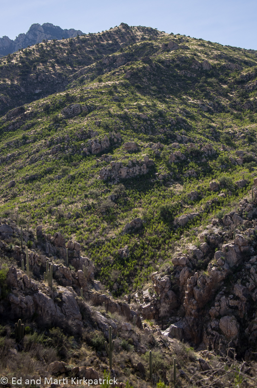 Just behind our campsite at Gilbert Ray where it was not full, but in fact almost empty. Over in front of those mountains is Old Tucson which was built to make movies and has only expanded and grown with many more movies and TV shows. You can take a tour but we didn’t.