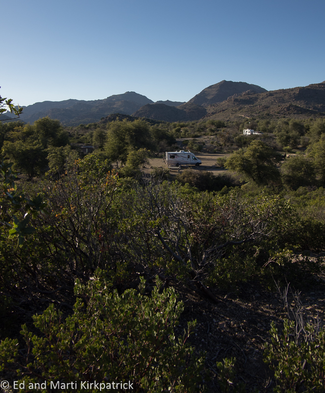 but soon opens up and isn’t as nice. We picked up US 191 heading for Safford, (which is sorry to say downright ugly) and then onto Interstate 10. We had planned to drop south to one of our favorite places, Bisbee, AZ but when I phoned the campground in town they said they were completely booked. Soooo we decided to head on to Oro Valley just north of Tucson and one of our other favorite spots, Catalina State Park, but when I phoned they also were full! Our nonstop good luck seemed to be on hold, (it was Friday night and weekends are often busier) so we headed for Gilbert Ray Campground just west of Tucson where it’s first come first served and we hoped not full.